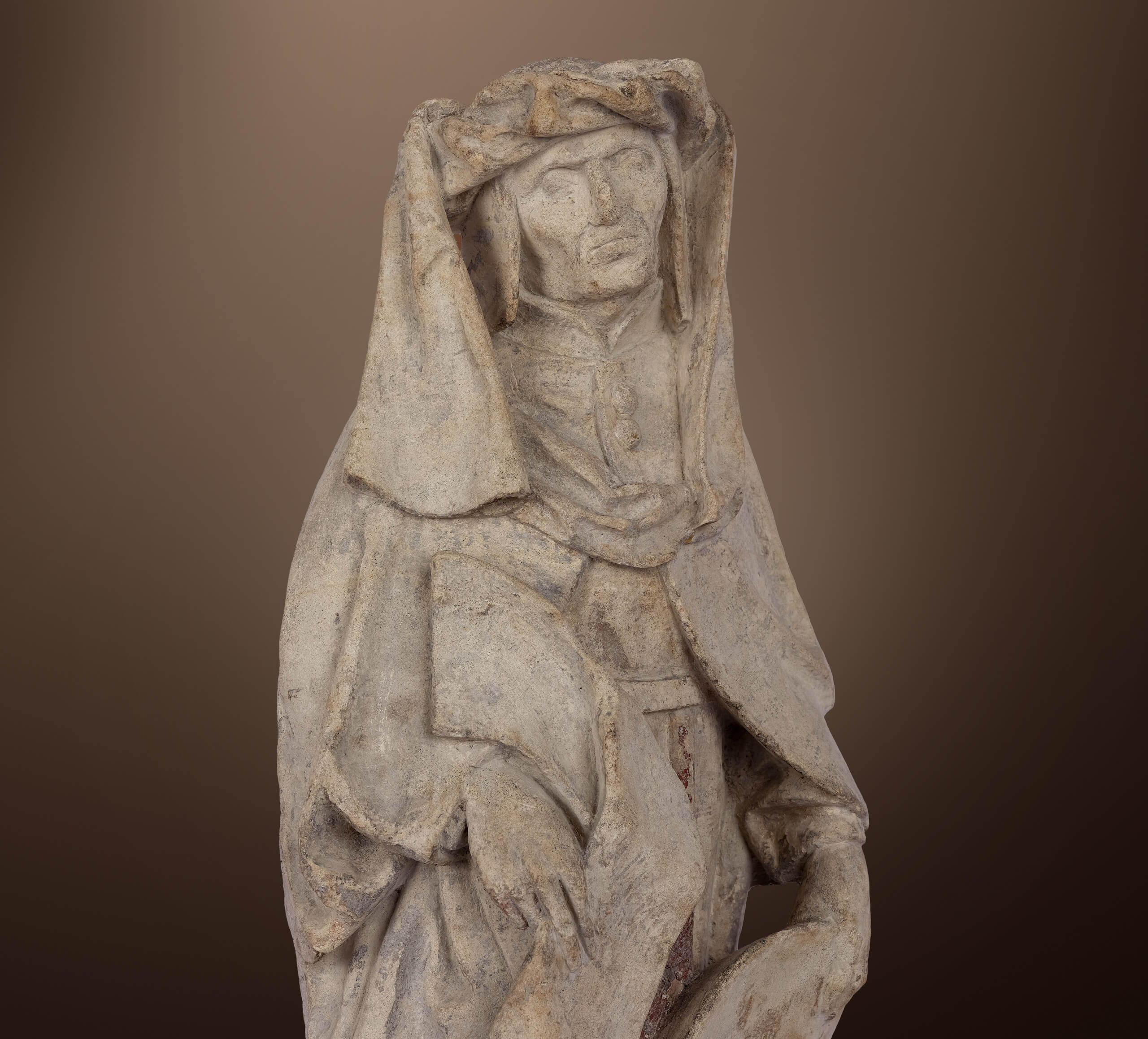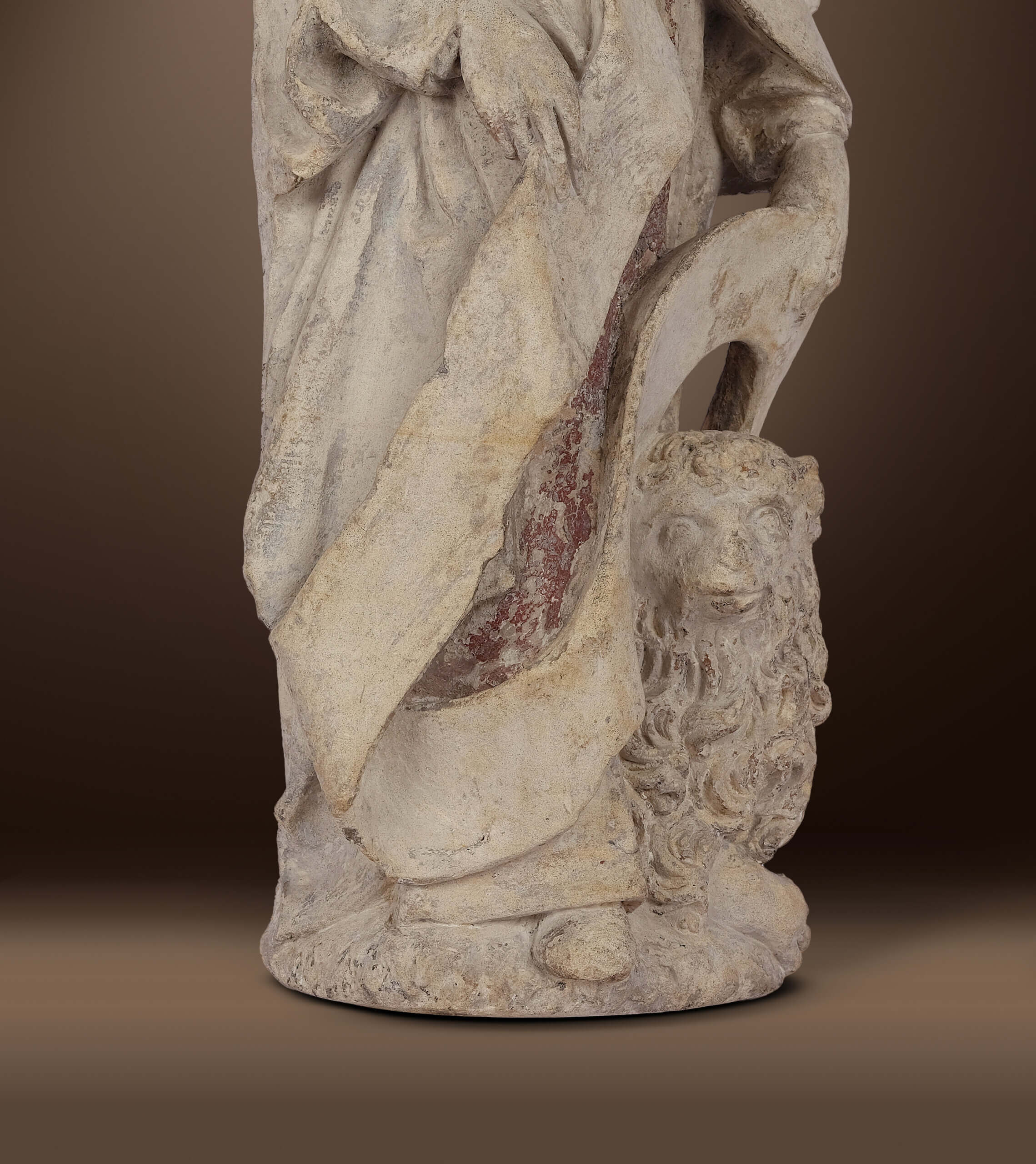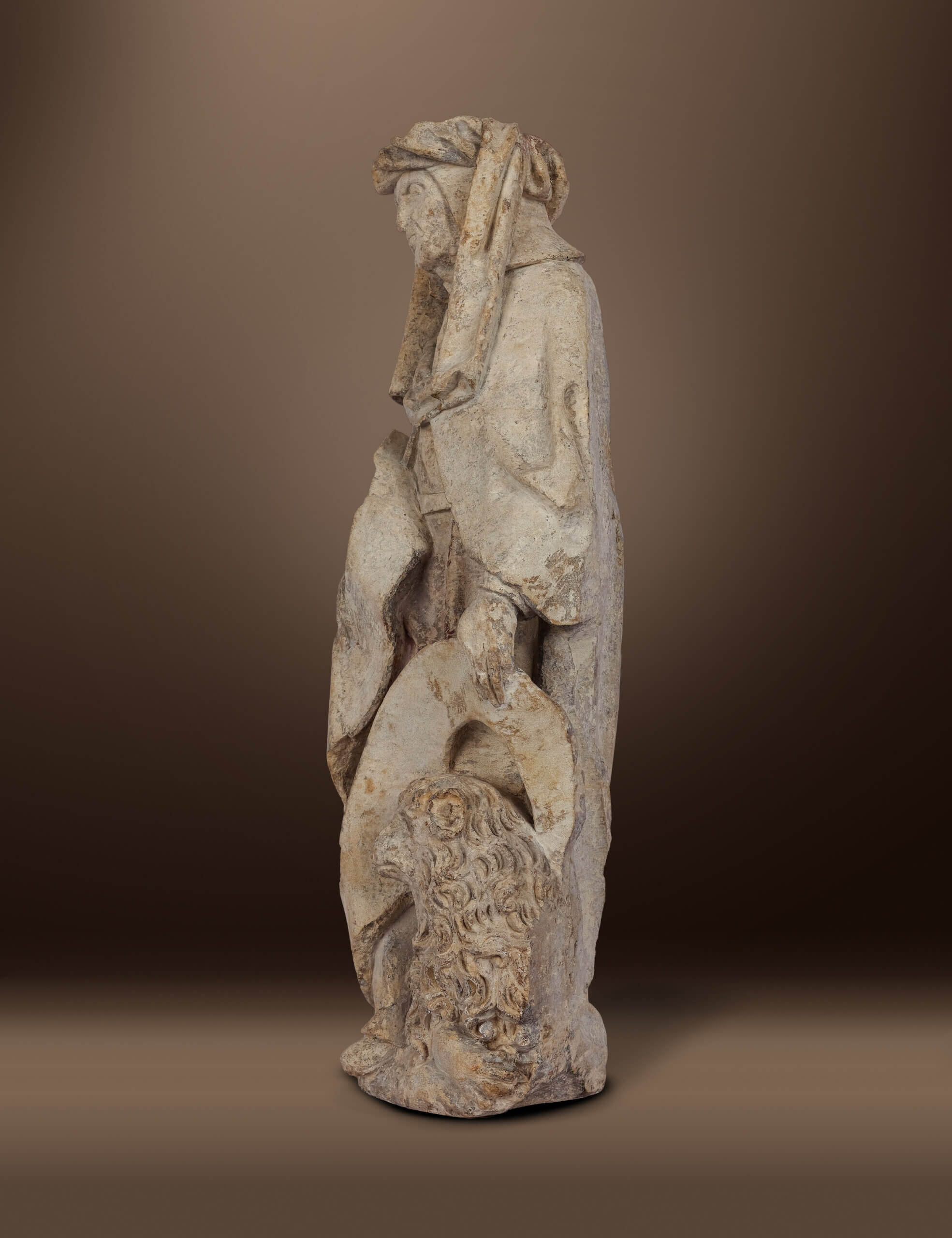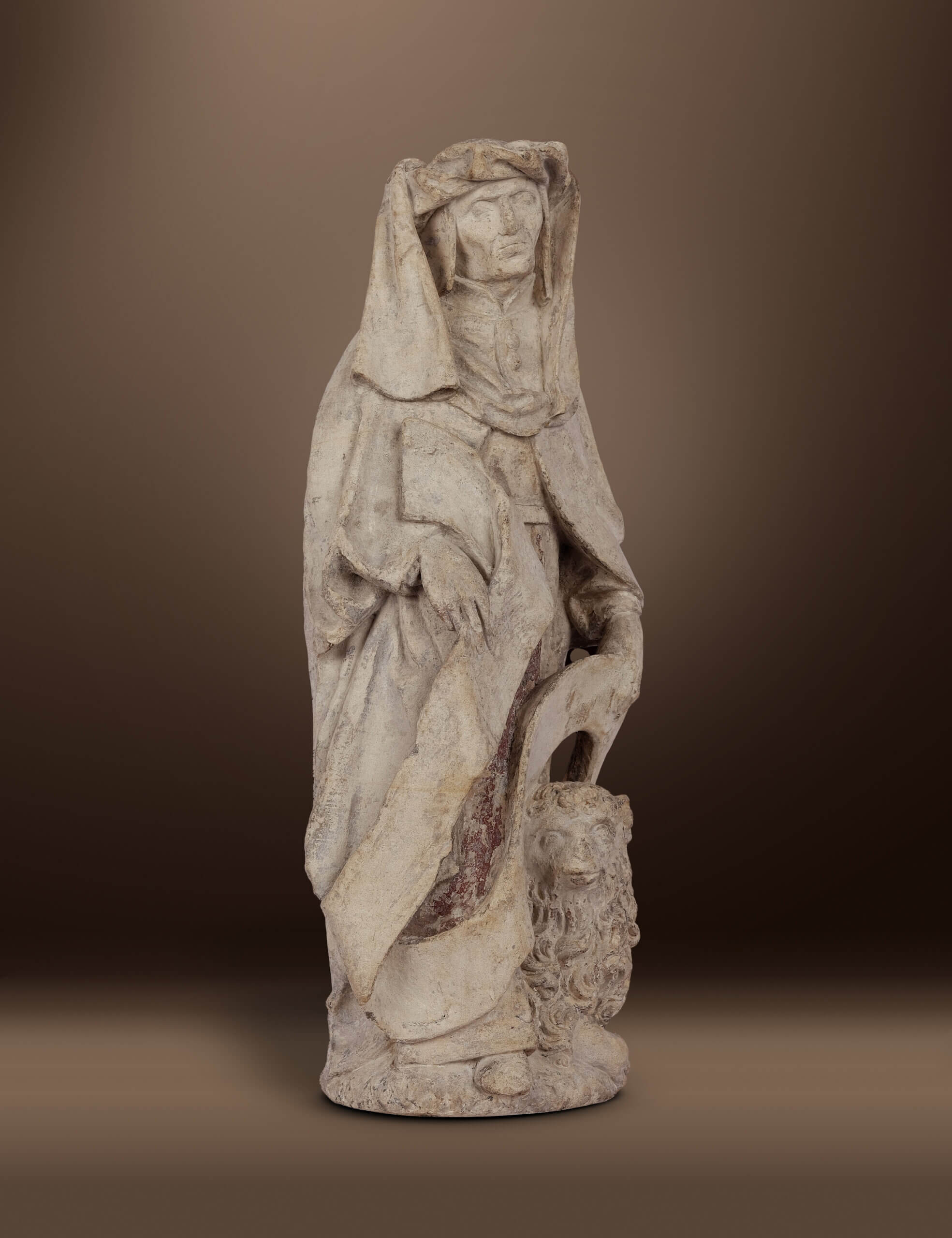 The representations of Jerome are still very much in demand today. Two-dimensional as paintings, these are 15. and 16th century more frequently. Very rare as a three-dimensional sculpture! This extraordinary sculpture of St. Francis of Assisi. Hieronymus convinces with a high artistic quality. It was executed in limestone by a master craftsman and remains of the polychromy are still present.