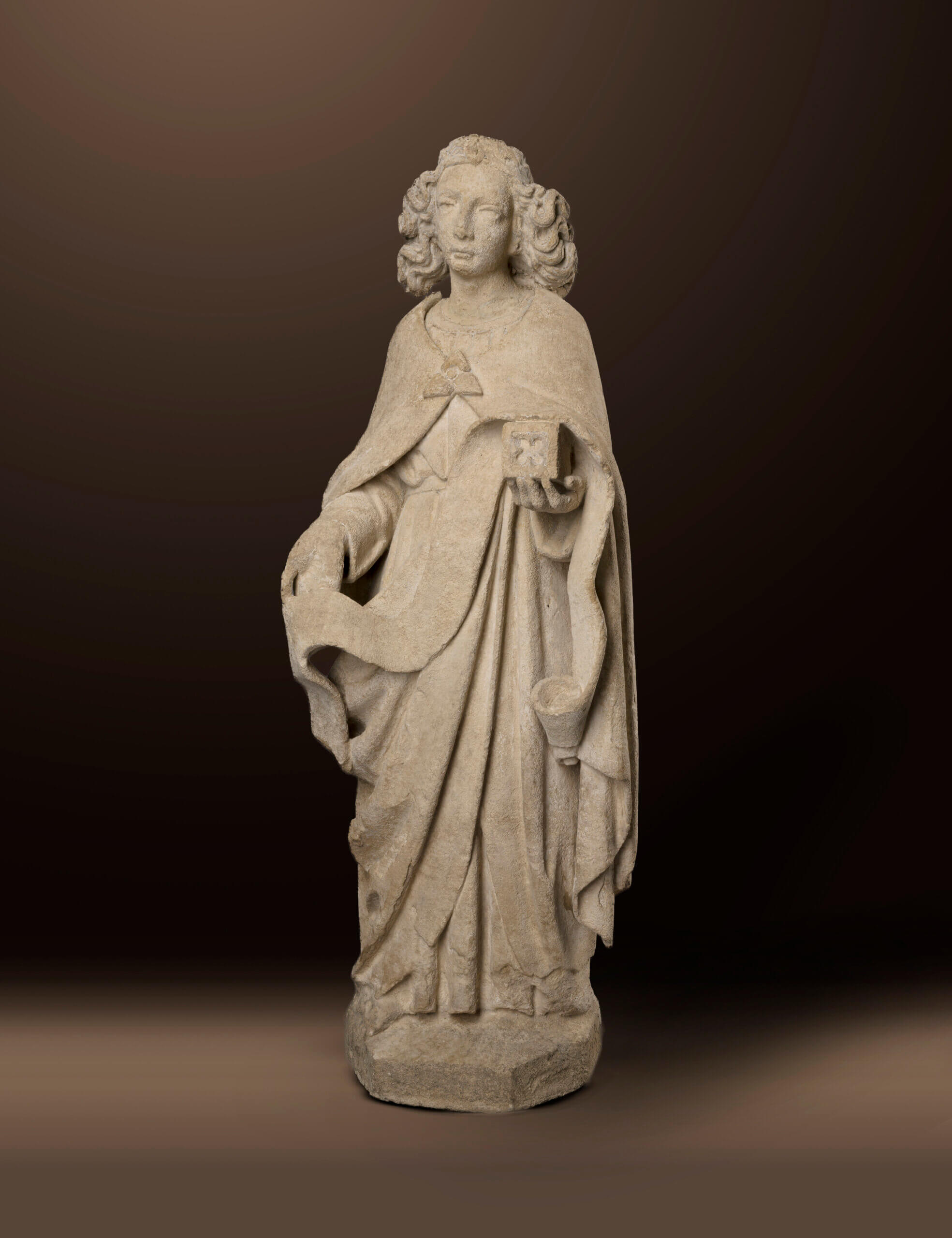 Par le choix du médium pierre, la réalisation de la draperie aux courbes douces et la représentation du type de tête caractéristique, Saint Jean fait référence à l’art sculptural d’Utrecht vers le milieu du XVe siècle. La figure provient très probablement d’un important atelier d’Utrecht qui, à cette époque, créait des représentations ludiques et animées avec des coiffures variées et naturalistes, qui seront reprises, avec des modifications, non seulement par les sculpteurs du gothique tardif d’Utrecht, mais aussi par des sculpteurs d’autres régions, comme par exemple Jan Borman, important maître sculpteur flamand du gothique tardif ou de la Renaissance néerlandaise de Bruxelles.