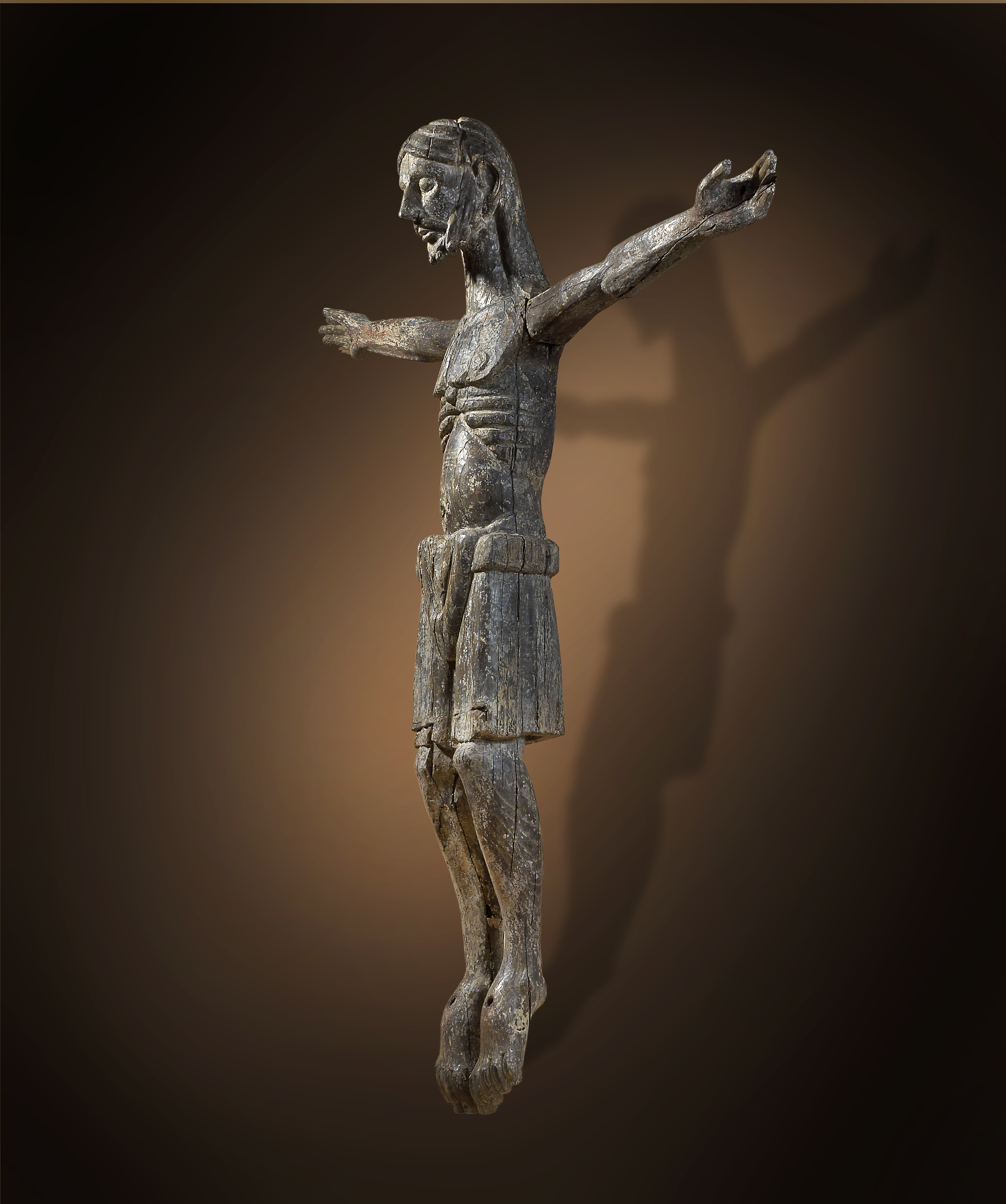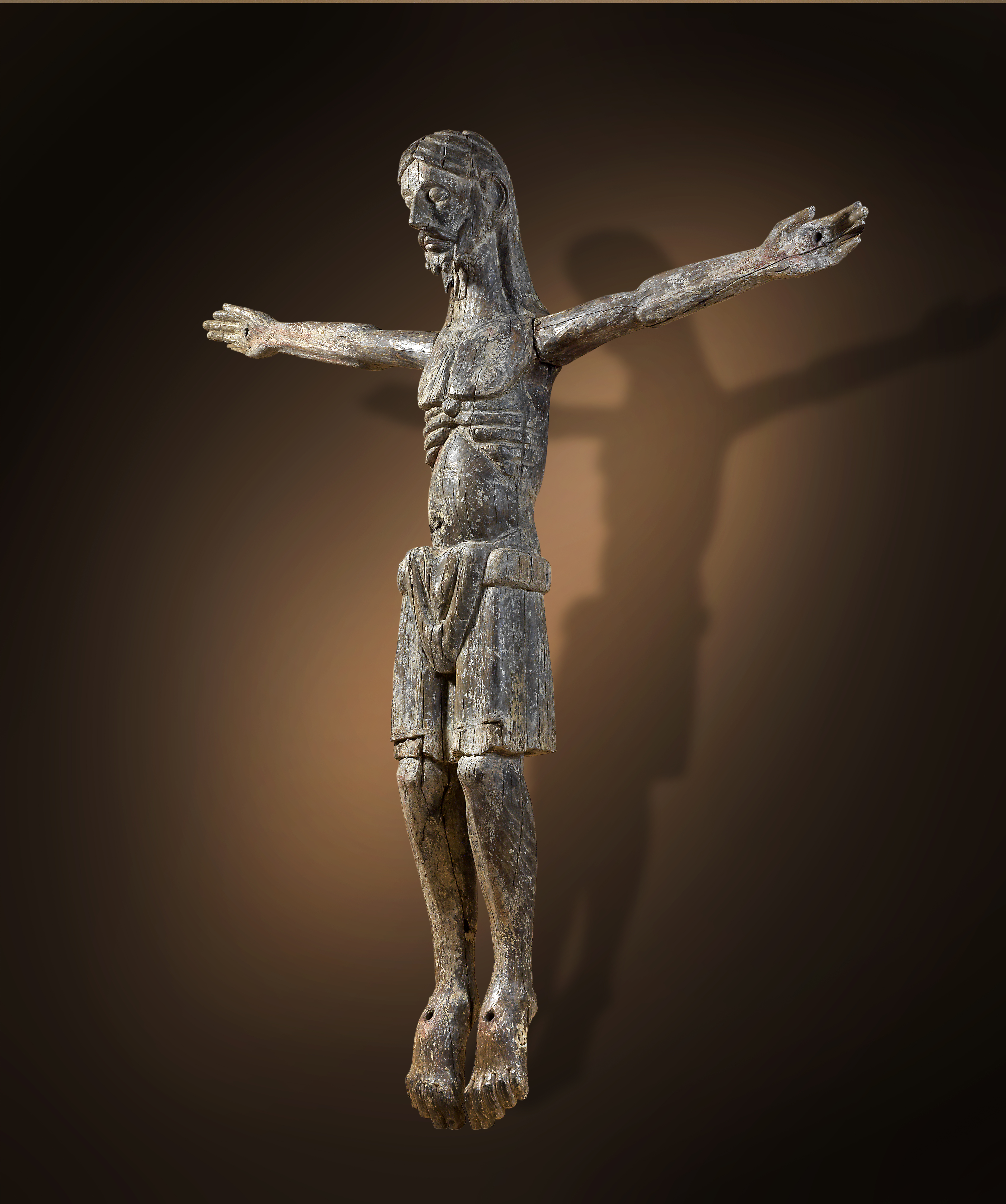 Le crucifix monumental du musée (110 x 98 cm) peut être daté stylistiquement entre 1170 et 1190, sa création pouvant être attribuée au sud-est de la France. Seuls les bras sont des restaurations ultérieures, vers 1400, et sont sculptés dans du châtaignier, tandis que le reste de la figure est en chêne. L’état de conservation du Christ est bon compte tenu de son âge, des restes d’un apprêt à la craie ont été conservés.